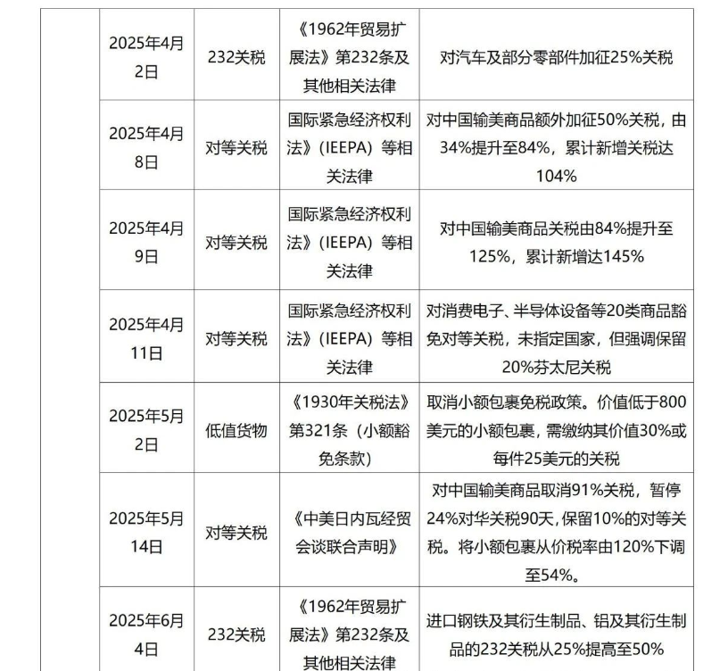 三、美国对华关税政策一览表(更新至2025.6.5)