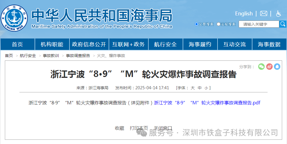 2025年4月14日,中国海事局公布了宁波“8·9”事故调查报告: