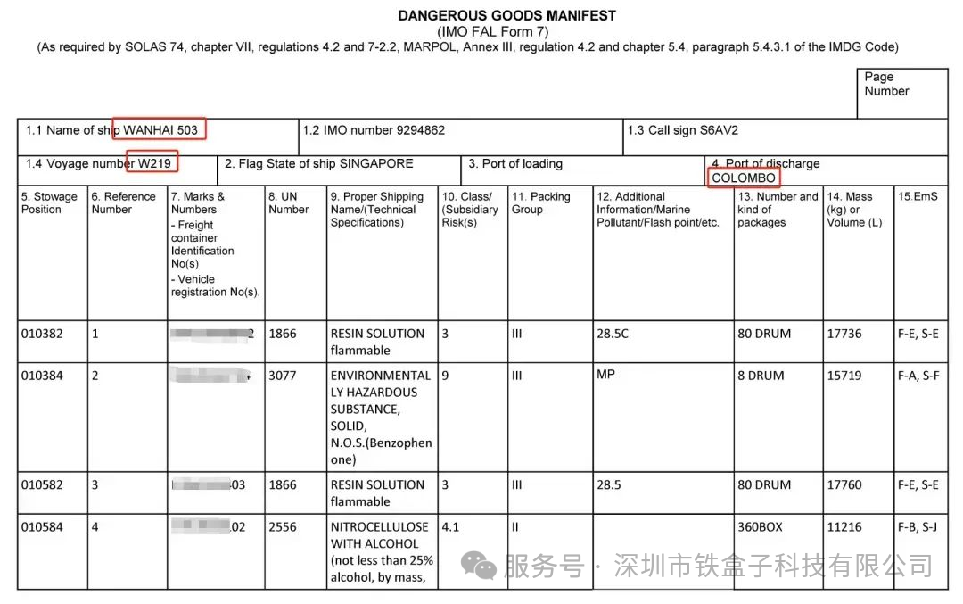 据最新消息显示:船上共装载157个危险品集装箱,涵盖约50箱易燃液体、20箱可燃固体、5个自燃物质罐、20箱有毒物质,以及其他剧毒农药、腐蚀性化学品、锂电池等高风险货物。